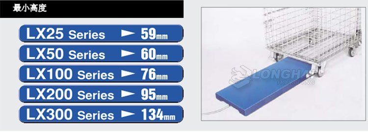 ▲Bishamon超低型升降平臺為日本BISHAMON原裝進口,本體采用低位設計,高度為59mm,常用于機械加工車間、汽車車間、醫療設備、包裝等行業物料裝卸、搬運等;