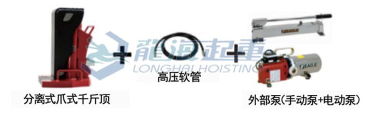 ▲鷹牌遙控趾式千斤頂通過高壓軟管與外部泵連接,可遠距離頂升;